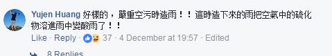現(xiàn)在,重點(diǎn)來(lái)了,有臺(tái)灣網(wǎng)友質(zhì)疑,若真的可以實(shí)現(xiàn)“人造雨”的話,那雨水里融進(jìn)了空氣中如硫化物之類的有害物質(zhì),不就形成了“酸雨”,再降落到地面或農(nóng)田的話,不僅會(huì)造成地表水的污染,民眾吃下或喝下的也都是有害物質(zhì)啊,這不就相當(dāng)于全臺(tái)灣的民眾都在慢性自殺嗎?