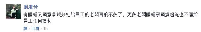 許多網(wǎng)友看了帖文后紛紛羨艷、要跳槽,“真是幸福企業(yè)”、“老板實(shí)在太贊了”、“好老板!懂得跟員工分享利潤”、“自己的老板會說,有550萬我去買新車,剩下的5萬你們拿去”。