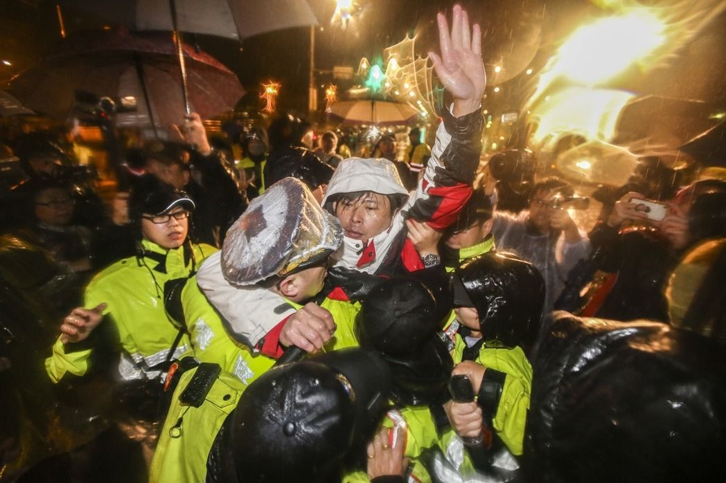 直到8日凌晨4點(diǎn)時(shí),臺(tái)北市警察局終于展開了“驅(qū)離”動(dòng)作!據(jù)臺(tái)媒報(bào)道,警方到場(chǎng)后,大聲表示當(dāng)天是上班日,“基于市民用路需要,要維護(hù)交通秩序”,加上“立委”禁食需人道考慮,因此實(shí)施“保護(hù)帶離動(dòng)作”,并動(dòng)用了兩輛大型警備車與兩百多名警力排成人墻,以包圍、分隔的方式,將現(xiàn)場(chǎng)靜坐抗議的“立委”與民眾分批送上警車,之后合計(jì)10男6女被警方帶走。
