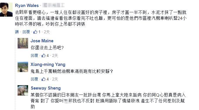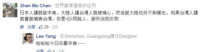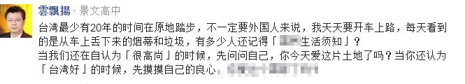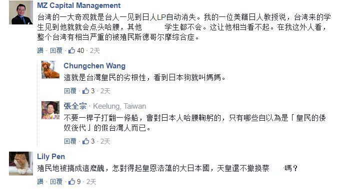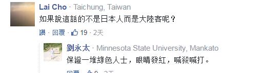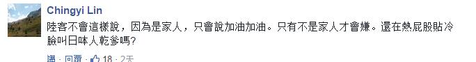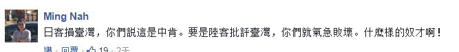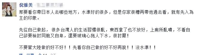 除此之外,另一些臺(tái)灣網(wǎng)友的爭論點(diǎn)則是放在了批評(píng)的“發(fā)聲主體”上,“幸好是被日本人酸,換做是大陸人,(對(duì)方)豈不是被罵翻天”、“日本人批就評(píng)價(jià)‘中肯’,換成陸客批,你們就氣急敗壞,還得說大陸也好不到哪里去”,“這就是臺(tái)灣人的‘奴性’”。