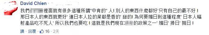 也有一些人認(rèn)為會(huì)對(duì)如此批評(píng)稱贊“中肯”的人,都是拜如今蔡當(dāng)局“媚日捧日親日”的政策所賜,“在日本人眼里,別人都是臟的,但別忘了,臺(tái)灣是因?yàn)楸蝗毡菊碱I(lǐng)殖民過才會(huì)臟亂的”、“臺(tái)灣‘皇民’的劣根性,看見日本就叫媽媽”。