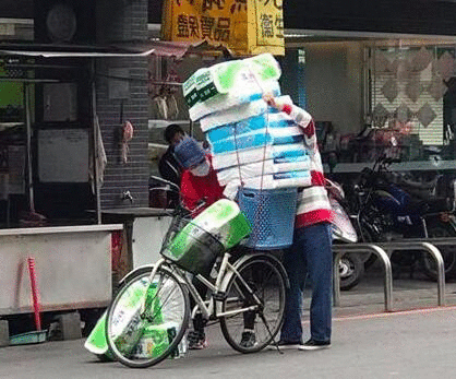 臺灣包袱鋪,不用搶購真幸福!我是坐等公司發(fā)福利不用去超市瘋搶衛(wèi)生紙的大侃子~萬萬沒想到,這春節(jié)才剛過,對岸的小伙伴們就陷入了如喪尸般的“衛(wèi)生紙大戰(zhàn)”中,甭管您是騎自行車的還騎機車的,或者您是開著大奔馳來的,反正大家都是衛(wèi)生紙的搬運工!