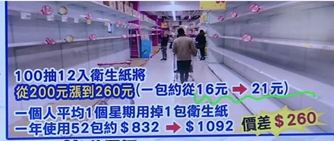 這還得從前兩天的新聞?wù)f起:據(jù)說臺灣三大衛(wèi)生紙供貨商日前證實,3月起將陸續(xù)調(diào)漲衛(wèi)生紙價格,市面上多家“叫得出名字”的品牌衛(wèi)生紙也確定將調(diào)漲,而且漲幅還不是1%或3%,而是高達10%至30%間!之后有臺媒以一串抽取式衛(wèi)生紙200元(新臺幣,下同)計算,稱漲價后最貴可能變成260元,約等于一個便當?shù)腻X;調(diào)漲時間點最快落在3月中旬,最慢4月前必漲。