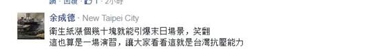 臺灣政論節(jié)目主持人黃智賢則發(fā)文說,所有大事,都沒有比買衛(wèi)生紙更重要,而“搶不到衛(wèi)生紙,是臺灣人崩潰的最新理由”;更嘲諷道,一直以來衛(wèi)生紙代表的是“毫無價值”,但民進黨改寫了衛(wèi)生紙的價值,這“也是民進黨的最新政績”了。