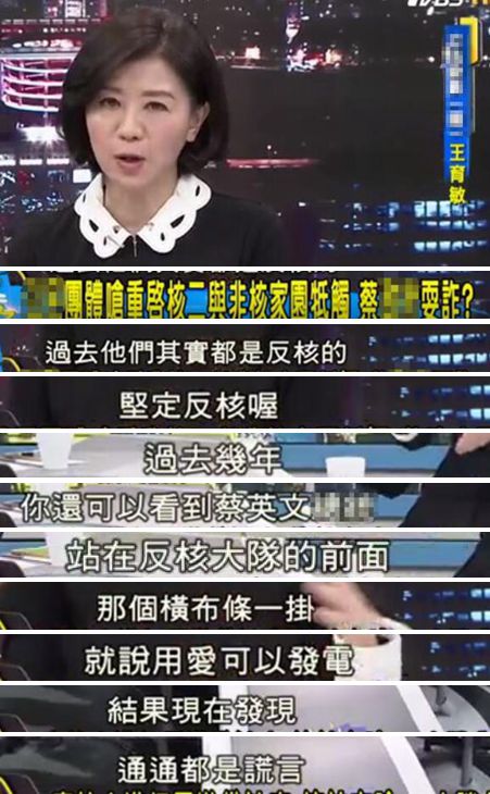 臺(tái)灣政論節(jié)目中的嘉賓也諷刺蔡英文當(dāng)局,當(dāng)初堅(jiān)定反核,說(shuō)用愛(ài)可以發(fā)電,“結(jié)果現(xiàn)在發(fā)現(xiàn)通通都是謊言”!