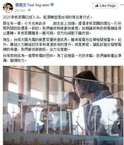 而眼見(jiàn)著反核游行民眾一波高過(guò)一波的質(zhì)疑聲,11日當(dāng)天蔡英文卻透過(guò)臉譜網(wǎng)重申了要建立“非核家園”的立場(chǎng),更指出:臺(tái)灣即將成為一個(gè)零核電的地區(qū),為了迎接這一天的來(lái)臨,臺(tái)當(dāng)局會(huì)做萬(wàn)全準(zhǔn)備,繼續(xù)努力。