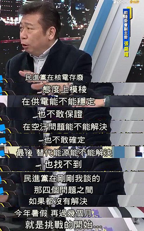 臺(tái)灣前陸委會(huì)副主委也指出,民進(jìn)黨當(dāng)局如今在核電存廢、供電穩(wěn)定、空污治理、能源替代四大問(wèn)題上皆無(wú)解決之法,民眾自然惱火,“你的政治承諾呢”?