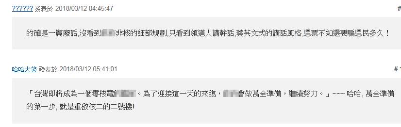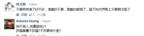 更有耿直的網(wǎng)友直接把矛頭對(duì)準(zhǔn)蔡英文,“(廢核)還不如直接廢蔡英文比較快”、“老在空中畫(huà)餅,把臺(tái)灣人當(dāng)傻子耍”。