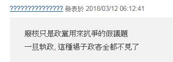 當(dāng)然,多數(shù)網(wǎng)友也是對(duì)蔡英文這份不痛不癢的“立誓帖”很不買(mǎi)賬,認(rèn)為這根本是“戲精”民進(jìn)黨的又一次演戲,“干話中的干話”,更有人直言“廢核只是政黨用來(lái)抗?fàn)幍募僮h題”。