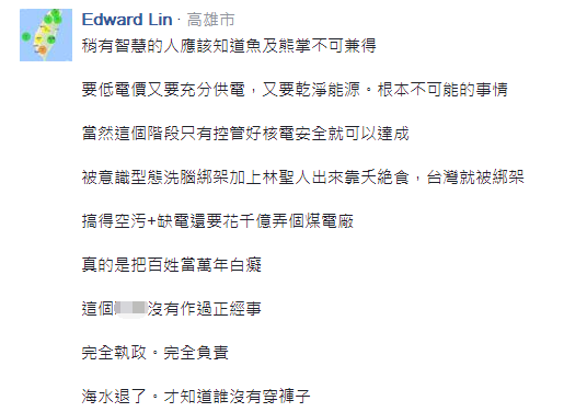 眾所周知,上月14日深澳電廠“環(huán)差案”通過(guò)后,引起島內(nèi)社會(huì)嚴(yán)重反彈,在世界各地都致力于減少燃煤發(fā)電的今天,蔡英文當(dāng)局卻向臺(tái)灣投下一枚“空污炸彈”,如此倒行逆施的做法也讓民眾心寒;而隨著天氣逐漸轉(zhuǎn)暖,缺電危機(jī)開始慢慢浮現(xiàn),要求重啟核電的聲音也變得更加明顯。這可讓“環(huán)保署長(zhǎng)”李應(yīng)元坐不住了,一言不合直接“公投”……