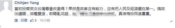 有網(wǎng)友稱“一直很討厭蔡英文,但在就任前對她還有一點期待”,因為“說不定她會提出類似老農(nóng)津貼或老人年金的政策”,又或者是“對22K青年、孕婦提出有感的‘政策性買票’”,如此的話,即使她在“勞基法”上亂搞,也還是會有不少的人“體諒她”。但萬萬沒想到,蔡英文提出的不是要預支子孫好幾兆新臺幣的“前瞻計劃”,就是不靠譜的“綠能發(fā)電”,該網(wǎng)友表示,按這樣下去很可能到2025之后,臺灣會變成一個電價高負債高物價高收入?yún)s低的“三高一低”地區(qū),“然后臺灣民眾還是要在缺電跟PM2.5兩者間二選一”,痛批道“前瞻跟能源政策將淘空臺灣,但蔡當局就是要硬干”!