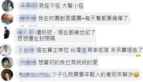 沒想到許多網(wǎng)友看到照片都不意外,紛紛淡定表示“見怪不怪,大驚小怪”“想當(dāng)初的我也有純純的愛”“少子化就需要年經(jīng)人的沖勁來解決”。