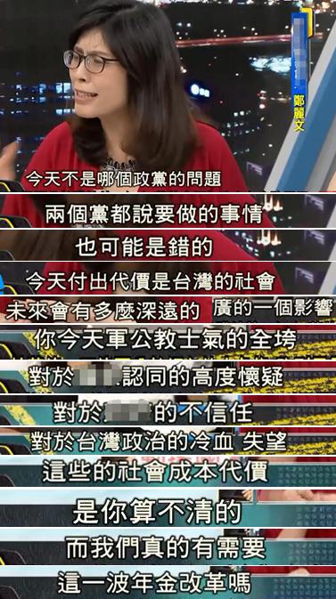 換句話說,島內(nèi)消費市場因年改省下多少錢就有可能失去多少錢的活水!前“行政院發(fā)言人”鄭麗文痛心疾首的表示,這波年改不僅讓整個臺灣社會付出代價,對未來也有著深而廣的負面影響,直嘆“我們真的有需要這樣的年改嗎”?