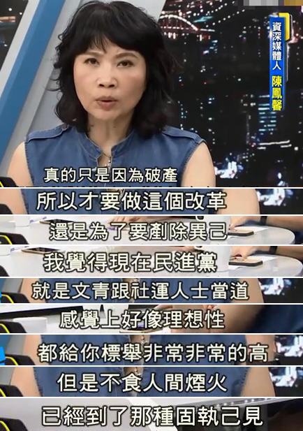 資深媒體人陳鳳馨就認為,蔡當局是在借年改之名行鏟除異己之事!