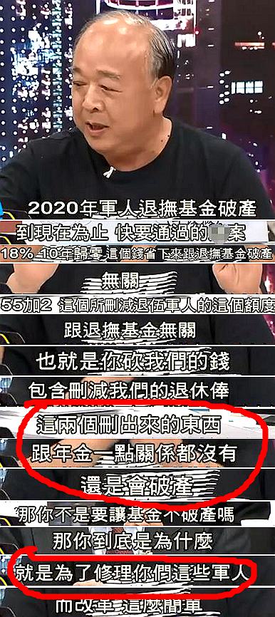 受年改波及的退役軍官吳斯懷也直言,蔡當局刪減的錢其實跟她口中的“保障基金不破產(chǎn)”——一點關(guān)系都沒有!他們依然執(zhí)意如此目的就是“修理你們這些軍人”!