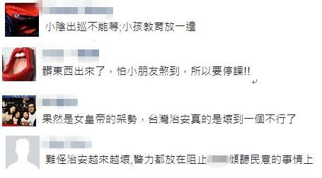 此事在網絡上引起了許多家長不滿,紛紛痛批:“小陰(蔡英文)出巡不能等,小孩教育放一邊”“果然是女皇帝的架勢”“難怪治安越來越壞,警力都放在阻止傾聽民意的事情上了”。