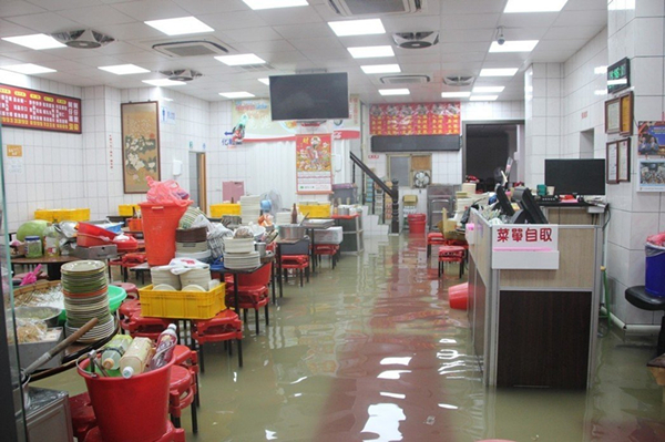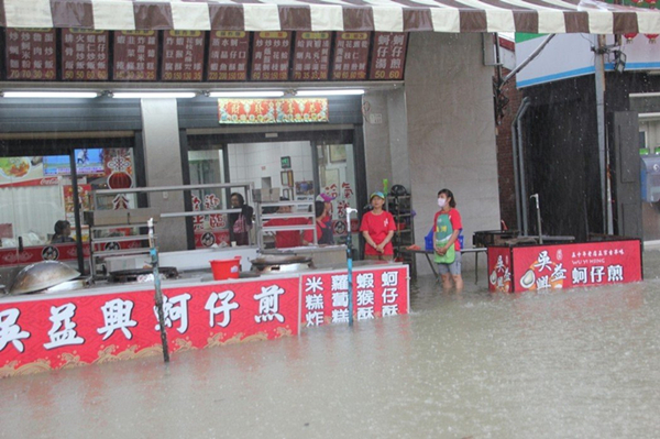 彰化地區(qū)的鹿港鎮(zhèn)老街、古跡天后宮、龍山寺前廣場(chǎng)作為目前彰化重點(diǎn)推動(dòng)的歷史風(fēng)景區(qū)卻像一片汪洋,排水系統(tǒng)無(wú)法負(fù)荷,不少排水孔被塑料袋、垃圾堵住,許多小吃店都淹水,碗盤都只能堆在高處,店家得忙得清理環(huán)境,根本無(wú)法做生意,苦不堪言。