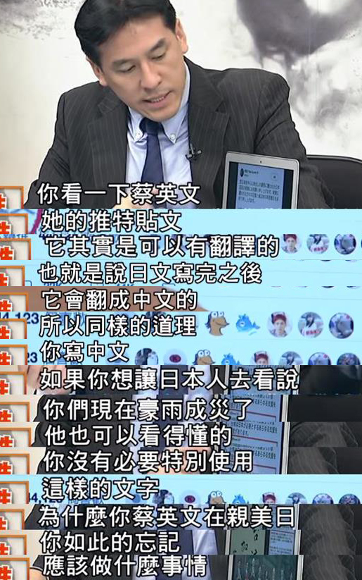 看到南臺(tái)灣的這幅景象,作為臺(tái)灣當(dāng)局領(lǐng)導(dǎo)人的蔡英文竟然只關(guān)心日本暴雨的災(zāi)情,并且用日文表示慰問,資深媒體人黃暐瀚在政論節(jié)目中批到:“為什么蔡英文在親美日的事情上面,你如此的忘記,作為臺(tái)灣地區(qū)領(lǐng)導(dǎo)人應(yīng)該做什么事情”。