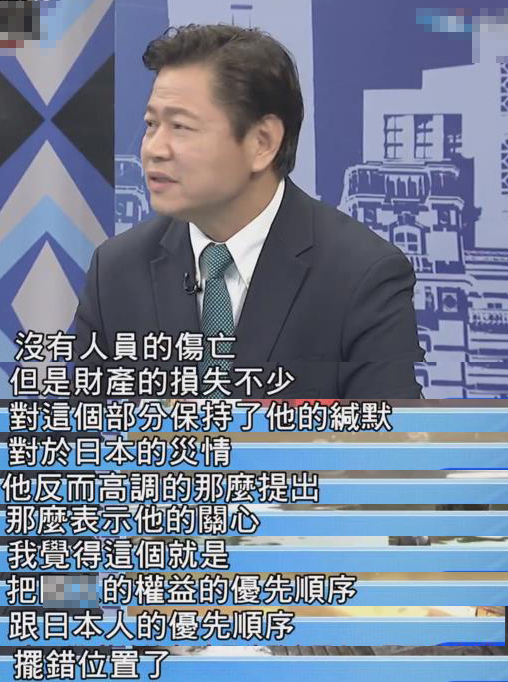 對(duì)此,臺(tái)灣政論節(jié)目嘉賓表示,沒有人員傷亡,但是財(cái)產(chǎn)損失不少,蔡英文和賴清德對(duì)此保持了他們的緘默,對(duì)日本災(zāi)情反而高調(diào)表示他的關(guān)心,完全是把臺(tái)灣人和日本人的權(quán)益優(yōu)先順序擺錯(cuò)了位置。