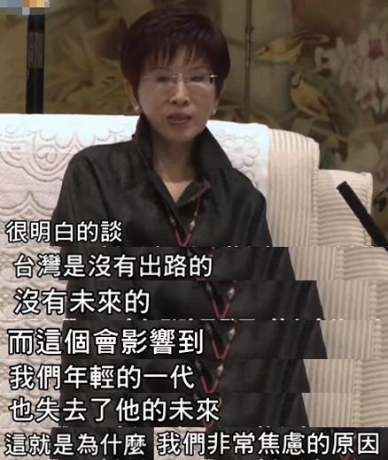 7月7日,洪秀柱率團出席“海峽兩岸青年發(fā)展論壇”時表示,兩岸問題若無法解決,那臺灣就無未來與出路,而這會讓臺灣年輕一代也失去未來,“這就是為什么我們非常焦慮的原因”。