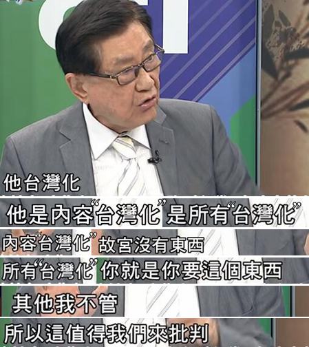 臺(tái)灣政論節(jié)目評(píng)論人葉耀鵬更表示陳其南的“故宮臺(tái)灣化”有兩點(diǎn)“值得批判”:一是見利忘義,二是不顧禮義廉恥。