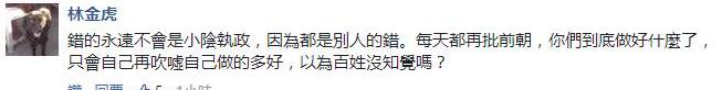 還有不少網(wǎng)友對(duì)蔡當(dāng)局總把錯(cuò)誤“甩鍋”給馬還自夸政績(jī)的做法很不齒,直言“以為百姓沒知覺嗎?”。