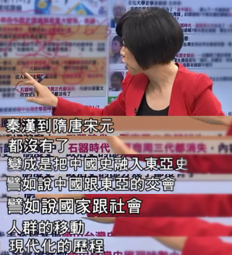 從8學分變成6學分,教材也從1.5冊變成了1冊,要知道臺灣的歷史教材總共是6冊,中國史竟然只占六分之一。