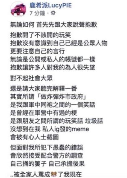 他表示,這篇文章是他在未公開的群組內(nèi)發(fā)文,用語也都是好友間平日聊天時(shí)才會(huì)用的夸張語法,其實(shí)并沒有要炸彈臺(tái)北市政府的動(dòng)機(jī),但不想會(huì)被人公布,造成這么大的風(fēng)波……