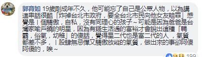而盡管吳睿軒道了歉,但他的行為還是既不被部分網(wǎng)友認(rèn)可,也沒得到老爸的原諒……有網(wǎng)友直言“沒有你爸的光環(huán),你屁都不是”、“這是存心要害死他老爸”!