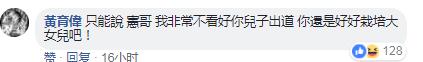 吳宗憲表示,兒子的貼文雖是私人領(lǐng)域,不涉及公共的問題,但覺得這樣的發(fā)文并不OK,“我個(gè)人覺得,不該講這種鳥話,自以為了不起,就讓他承擔(dān)后果,這樣很好!”,他認(rèn)為,兒子已為公眾人物,應(yīng)該要了解事情輕重,并承受后果,自己做了什么,就要負(fù)全部責(zé)任,他也就事論事的指出“看有沒有需要,直接去關(guān)也很好”。