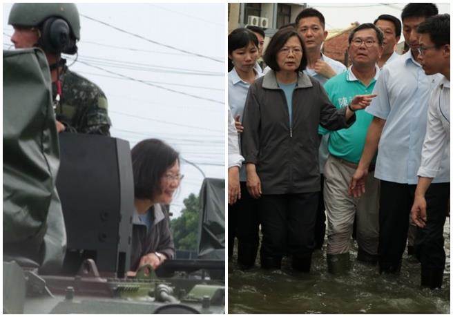 因南臺灣暴雨導(dǎo)致多地區(qū)淹水,蔡英文昨(25)日前往嘉義勘災(zāi),到達布袋鎮(zhèn)永安里時,當(dāng)?shù)卮迕裨詾樗莵眢w察民情,卻沒想到蔡竟然搭乘云豹裝甲車試圖駛?cè)霝?zāi)區(qū),期間還向受災(zāi)民眾揮手致意,滿臉堆笑。