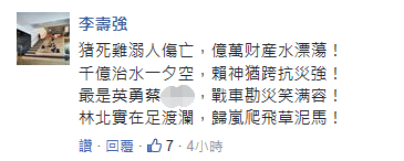 此次事件,也不免讓人想到之前日本關(guān)西水災(zāi)時,蔡英文第一時間在推特關(guān)心,并指示外事部門捐3000萬日幣,而民進黨高層在臺灣民眾身陷“水世界”時,卻神隱不作為,“行政院長”賴清德更是忙著和商總成員座談,給生意人摸頭、排憂解紛,卻直到隔天才出聲,待遇明顯差很大。
