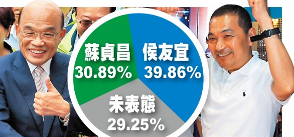 今年7月27日,臺灣世代智庫發(fā)布民調(diào)顯示,候選人侯友宜支持度42.6%,蘇貞昌則為40.6%。兩人差距僅差2%。
