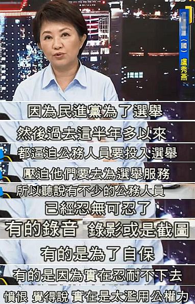 “公務(wù)人員忍無(wú)可忍了”,國(guó)民黨“立委”盧秀燕道出個(gè)中玄機(jī),原來(lái)是飽受民進(jìn)黨選舉逼迫的公務(wù)人員,對(duì)執(zhí)政黨這種濫用公權(quán)力的做法實(shí)在看不下去了!