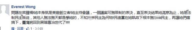 如此看來(lái)也難怪在“錄音門”頻發(fā)的這段時(shí)間,除了對(duì)當(dāng)事者的抨擊外,島內(nèi)網(wǎng)友更多的是劍指身處“大位”的蔡英文以及整個(gè)民進(jìn)黨團(tuán)了!有人說(shuō)蔡英文才是“東廠創(chuàng)立者”、“民進(jìn)黨在她的執(zhí)政下根本無(wú)法律民主”;有人嘆無(wú)惡不作的民進(jìn)黨正在把臺(tái)灣的整個(gè)風(fēng)氣“帶向沉淪”;而對(duì)于民進(jìn)黨這種濫用公權(quán)力、危害臺(tái)灣百姓權(quán)益的惡行,網(wǎng)友認(rèn)為“已是家常便飯”。