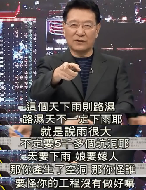 正所謂天要下雨,娘要嫁人,道路產(chǎn)生的問(wèn)題,當(dāng)然要?dú)w咎于工程沒(méi)有做好,就像臺(tái)灣資深媒體人趙少康所言,“下雨則路濕,但路濕卻不一定下雨,雨大不大,跟坑洞的問(wèn)題并沒(méi)有必然的聯(lián)系。”