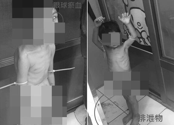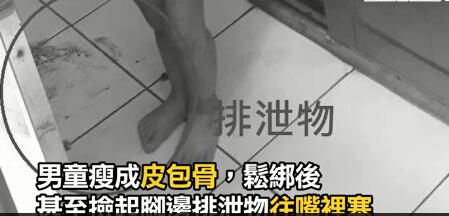 警方指出,此次遭虐的是二人年僅3歲的么兒,該男童有輕微行為障礙、學(xué)習(xí)遲緩。當(dāng)天生母前往家中探視,沒想到卻見兒子全裸在陽臺罰站,雙手還綁著束帶、繩子,且全身不但有大小瘀青,還瘦成皮包骨,兩邊的肋骨清晰可見,一被放下后竟急著撿地上排泄物吃,媽媽當(dāng)場失聲痛哭。