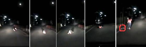 沒想到該女子竟不死心,先是向左翻了一圈,眼見原PO沒反應(yīng),又向右滾了兩圈,還一手將鞋子丟出,想營造車禍現(xiàn)場,但原PO依舊完全不為所動……后來女子實在演不下去了,加上場面太尷尬,只好起身小跑步逃離現(xiàn)場。過程中,女子一度想轉(zhuǎn)身撿回鞋子,但見原PO還在,只好頭也不回繼續(xù)跑,最后消失在黑暗中。