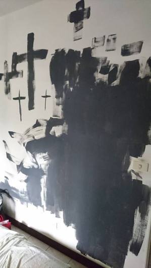 最讓網(wǎng)友崩潰的是,對(duì)方將房間墻壁涂上黑色油漆,畫(huà)上許多大小不一的十字架符號(hào),告知對(duì)方家長(zhǎng)后,家長(zhǎng)稱那是“女兒尚未完工的藝術(shù)涂鴉創(chuàng)作”,實(shí)在受不了的網(wǎng)友,只好以房子需要整修為由,要求對(duì)方10月底前搬離。