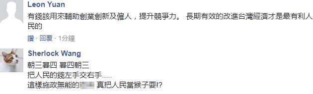 針對要編列預(yù)算補助月薪3萬以下的民眾,不少網(wǎng)友覺得很是不公、紛紛抗議:明明繳稅都是月薪3萬以上的人,能領(lǐng)“經(jīng)濟(jì)紅利”的卻是月薪3萬以下的人,這公平嗎?