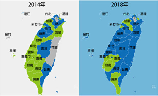 去年剛剛結(jié)束的“九合一”選舉,國民黨讓藍(lán)天重回15個(gè)縣市,一片大勝之勢(下圖,看顏色就好)。不過也有些島內(nèi)媒體人和國民黨人士示警:這次選舉是民進(jìn)黨選輸了,而非國民黨選贏了。實(shí)在是民進(jìn)黨當(dāng)局政策背離民意太遠(yuǎn),才導(dǎo)致了如此慘敗。