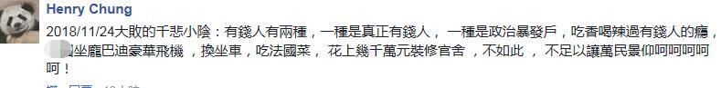 臺(tái)灣名嘴謝寒冰在政論節(jié)目中討論此事時(shí)也驚呼“怎么會(huì)這么夸張”!他還加碼爆料稱,陳菊時(shí)任高雄市長(zhǎng)時(shí),盡管在地有房產(chǎn)卻仍入住市長(zhǎng)官邸,在“天價(jià)電費(fèi)”被發(fā)現(xiàn)后就瞬間降到每?jī)蓚(gè)月5、6萬(wàn),“還是很貴啊”,謝再批“反正一切是公家的,隨便他們?cè)趺从谩薄?/p>