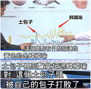 經(jīng)過幾天的發(fā)酵,“土包子”的網(wǎng)絡(luò)熱度持續(xù)延燒,甚至高點一度超越“韓國瑜”,讓媒體人驚呼,“土包子”超過了“土包子頭”。