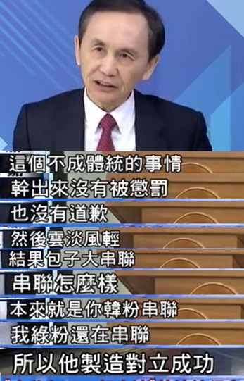為什么蔡英文覺得黃重諺做的對呢?吳子嘉分析,黃重諺的“土包子”說可以加速“韓粉”和“綠粉”的對立,而制造藍綠對立和藍綠對決則是目前身處劣勢的蔡英文,唯一的希望。