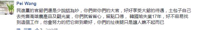只見他很淡定的表示,面對“立委”質(zhì)詢時,自己是被動響應(yīng)的,稱“農(nóng)委會”去年就與韓國瑜此次簽訂的一家公司促銷農(nóng)產(chǎn)品了,銷售金額為2500萬元,包含芒果、木瓜、菠蘿、荔枝、葡萄等臺灣特色蔬果,“我就只是有什么數(shù)據(jù)講什么話,沒想到韓國瑜市長反應(yīng)這么激烈”;還說自己不會對任何人口出惡言,而且只要愿意把農(nóng)產(chǎn)品賣出去,“農(nóng)委會”都非常歡迎。