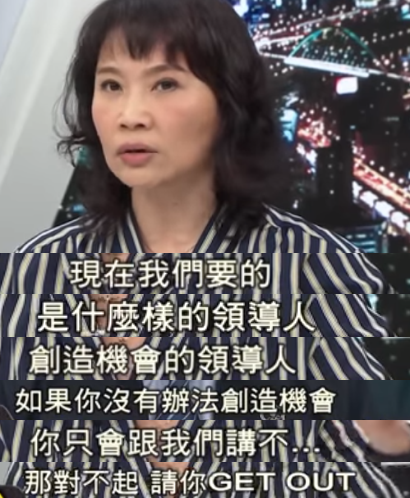 媒體人陳鳳馨說(shuō)得更直接,我們臺(tái)灣人需要的是能夠創(chuàng)造機(jī)會(huì)的領(lǐng)導(dǎo)人,如果只會(huì)說(shuō)不不不,那就請(qǐng)你離開(kāi)!