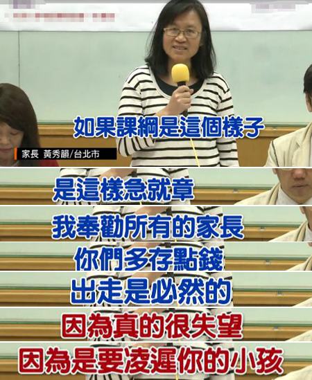 身為高中學(xué)生家長的黃秀韻更是氣得痛批,臺當(dāng)局是意識形態(tài)掛帥,稱“教改愈改愈糟,這是凌遲小孩”,還奉勸所有家長“多存點(diǎn)錢”,因?yàn)椤?strong>出走是必然的”。