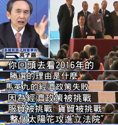 吳子嘉分析,為什么當(dāng)年民進(jìn)黨能夠上臺(tái)執(zhí)政,就是靠著“太陽花運(yùn)動(dòng)”搞垮了馬英九當(dāng)局的服貿(mào)協(xié)定和貨貿(mào)協(xié)定,讓馬當(dāng)局的經(jīng)濟(jì)政策失敗,趁機(jī)得逞。