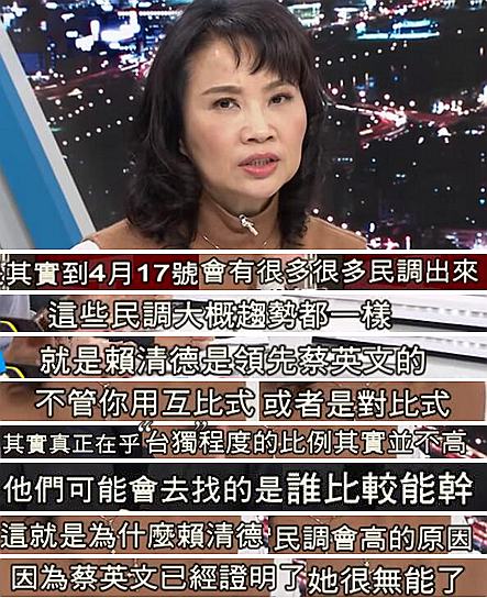 媒體人陳鳳馨說(shuō)得更直接:拋開(kāi)“臺(tái)獨(dú)”程度來(lái)看,臺(tái)灣老百姓就是覺(jué)得——蔡英文很無(wú)能!
