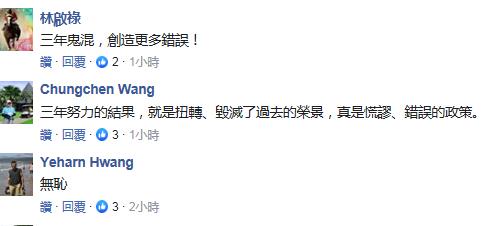 國民黨民代王育敏更用20個字,對蔡英文當(dāng)局執(zhí)政三年來的表現(xiàn)做了總結(jié):